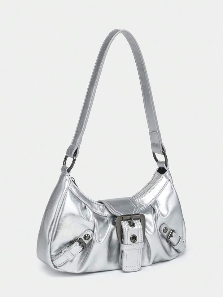 The Ellari Metallic Silver Bag is the perfect accessory to add a touch of glamour to any outfit. With its sleek metallic finish, this bag reflects light and shines with every movement, ensuring you stand out in style. Spacious yet compact, it offers ample room for your essentials, making it both practical and chic. Whether dressing up for a night out or elevating a casual look, this metallic silver bag is a must-have statement piece.